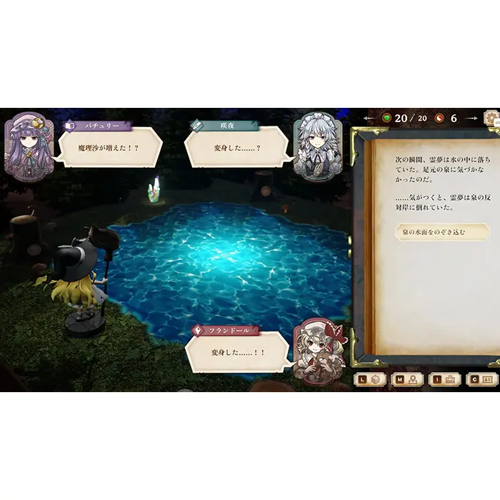 - Lối Chơi RPG Phong Cách Tabletop: Bạn vào vai Reimu, khám phá hầm ngục bên trong cuốn sách để cứu Marisa. Câu chuyện chính duy nhất, nhưng con đường sẽ phân nhánh theo vô số cách dựa trên lựa chọn của bạn và kết quả tung xúc xắc, sau đó hội tụ lại thành kết thúc chuyến hành trình.