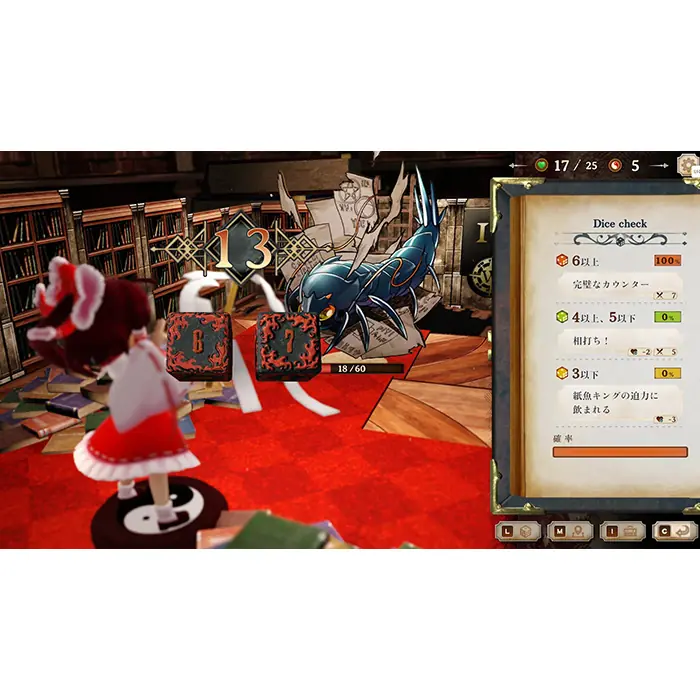 - Ảnh Hưởng Từ Nhân Vật Scarlet Devil Mansion: Remilia, Flandre, Sakuya, và Patchouli thường xuyên xuất hiện, đưa ra ý kiến riêng của họ như những lựa chọn mà bạn có thể cân nhắc. Đôi khi lời khuyên của họ hữu ích, đôi khi vô nghĩa, hoặc thậm chí gây rắc rối. Nhưng bằng cách chấp nhận đề xuất của họ, bạn có thể có được các xúc xắc mạnh mẽ!