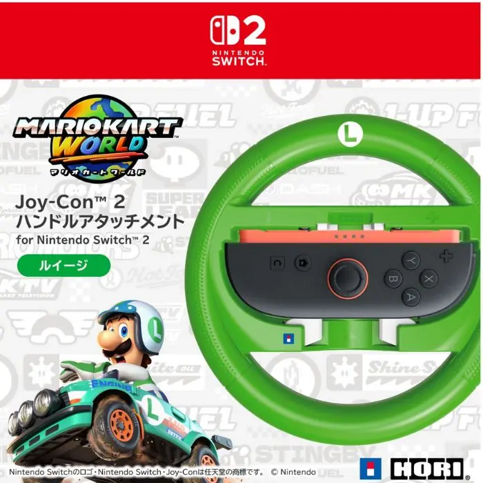 HORI – Wheel for Joy-Con 2 – Luigi là phụ kiện vô lăng chơi game được thiết kế dành riêng cho hệ máy Nintendo Switch 2, giúp biến hai tay cầm Joy-Con 2 thành vô lăng điều khiển thực tế trong các game đua xe như Mario Kart World và những game tương thích điều khiển chuyển động. Với phong cách lấy cảm hứng từ Luigi — người anh họ màu xanh nổi tiếng trong thế giới Mario — phụ kiện kết hợp trải nghiệm chơi game trực quan với thiết kế đầy cá tính.