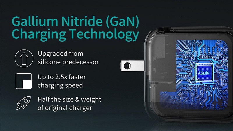 Các đặc tính của GaN bao gồm: giới hạn chịu nhiệt cao hơn, khả năng xử lý điện năng cao, và có độ di động điện tử cao gấp 1.000 lần so với Silicon. Vì vậy thì kích thước củ sạc khi sử dụng GaN sẽ nhỏ gọn hơn so với củ sạc sử dụng Silicon. Cho nên thay vì bị buộc trong khuôn khổ sạc chính hãng Apple, bạn cũng có thể lựa chọn những củ sạc khác từ bên thứ ba với đặc điểm tương tự mà còn có kích thước nhỏ hơn.