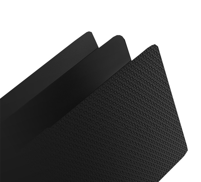 Các cạnh xung quanh được cắt CNC bo cong mềm mại, ở trên bề mặt di chuyển chuột của tấm lót, nhà sản xuất phủ một lớp nhựa nhiệt dẻo PC. Lớp vật liệu này có tác dụng tối ưu hóa hiệu suất vận hành chuột cho người dùng nhờ bề mặt cực kỳ êm ái. Khi sử dụng, bề mặt sẽ phản ứng cực nhạy và định vị chính xác vị trí chuột của bạn.